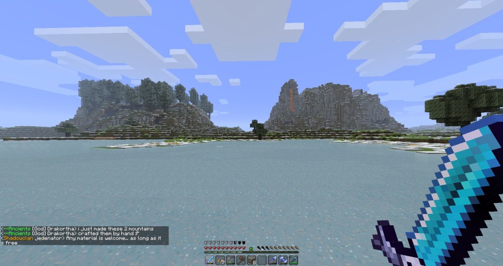 During the first Age of Gods, Blue Peaks was introduced as one of the 3 main playing areas on The Old Mainland. The Shire was the spawn town at the time which was located where the Old Fort is today. However, the shire was burned and buried under a collapsing rift during the first Age of Rifts, transforming the region into Molten Valley. Despite many excavation attempts, The Shire was never recovered. Shady Sands, the 3rd playing area, by comparison remains relatively well preserved to this day.